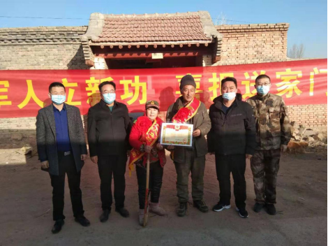 1月13日,浑源县双拥办、人武部、退役军人事务局组成慰问小组,打着横幅,敲起锣鼓,进村入户,为2020年度立功受奖现役军人家庭送立功受奖喜报。