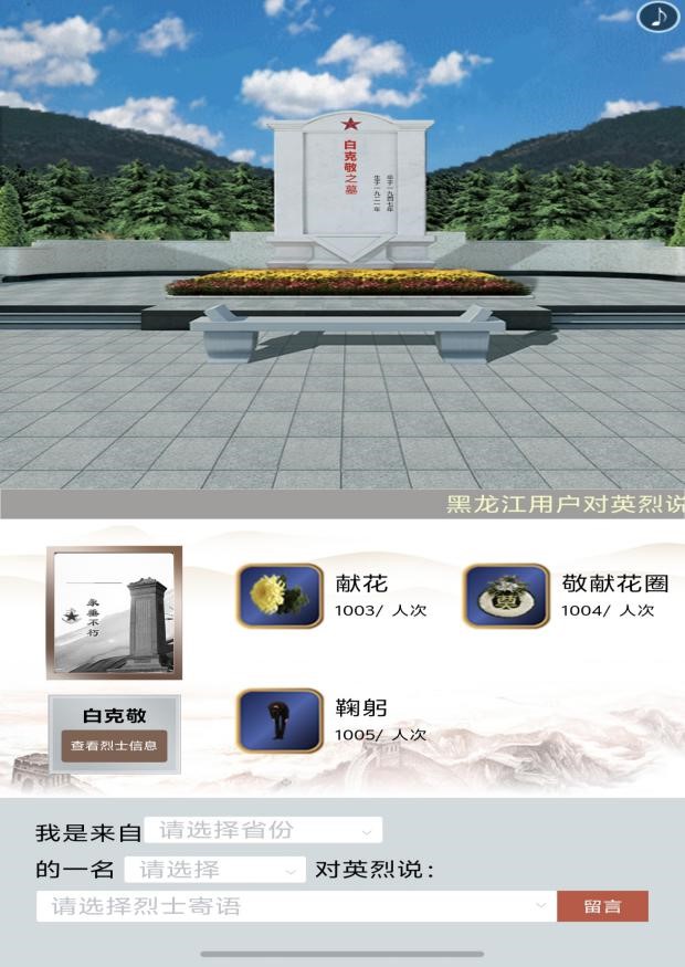 第四步:进行网上鞠躬、献花、敬献花圈及对烈士留言寄语。
