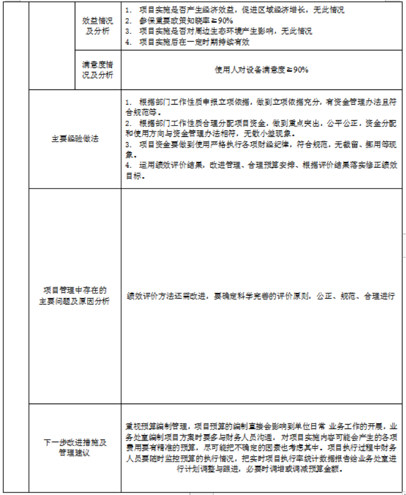 办公电脑购置经费项目自评综述:根据年初设定的绩效目标,项目自评得分为97分。全年预算数为29.84万元,执行数为29.84万元,完成预算的100%。项目绩效目标完成情况:一是项目按照年初设定绩效目标达成指标;二是此批电脑已验收合格投入使用。发现的主要问题及原因:一是数量指标年初设定略有偏差;二是在具体的工作中未考虑工作的难度和项目进展,导致进度缓慢。下一步改进措施:一是要加强年初预算编制和绩效设定管理;二是充分进行绩效监控,根据实际情况及时对项目绩效目标进行调整。