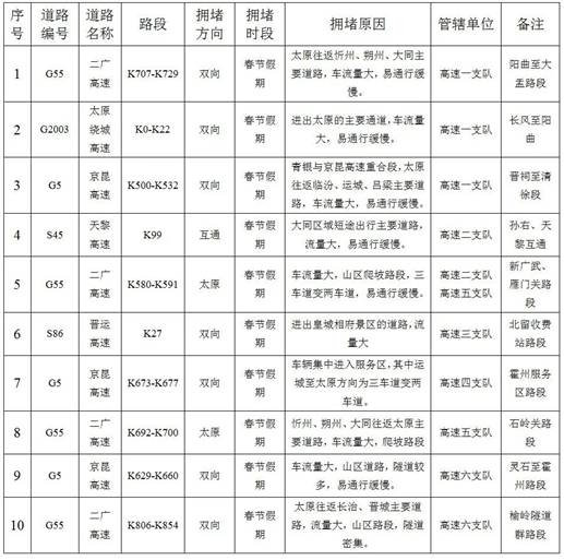 二、全省春节期间易缓行路段及节点