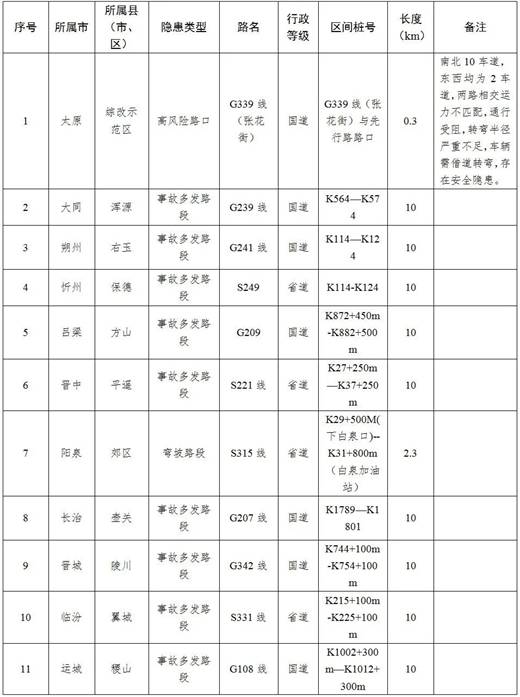 三、全省春运期间事故多发及高风险点路段