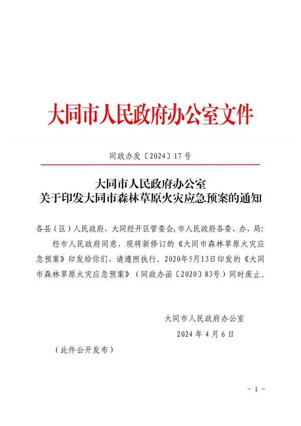 关于印发大同市森林草原火灾应急预案的通知