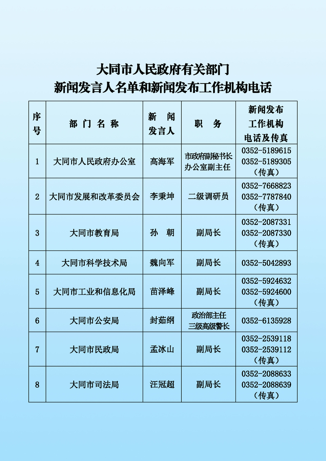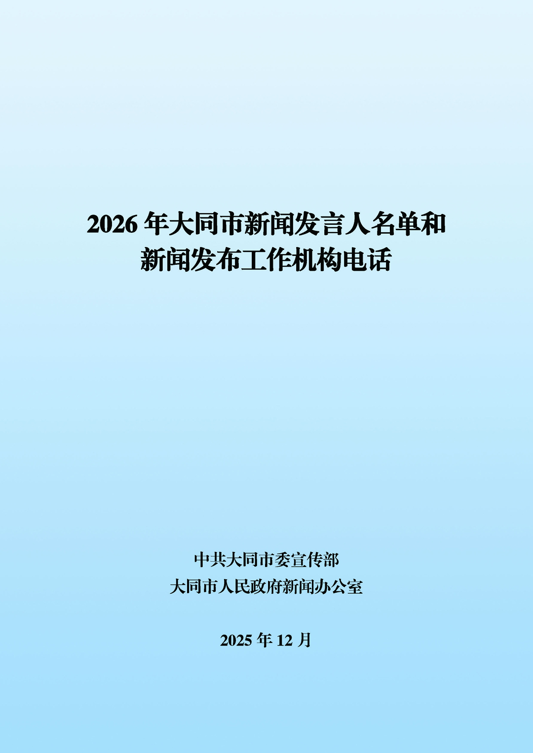 2025年12月30日,中共大同市委宣传部(大同市人民政府新闻办公室)向社会公布2026年大同市、县(区)党委、政府新闻发言人名单及新闻发布工作机构电话。