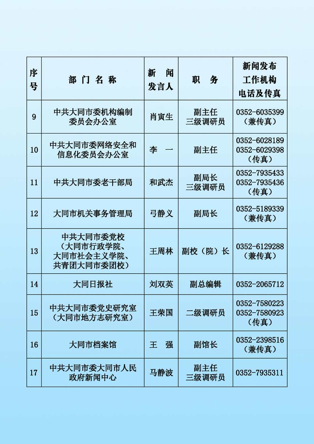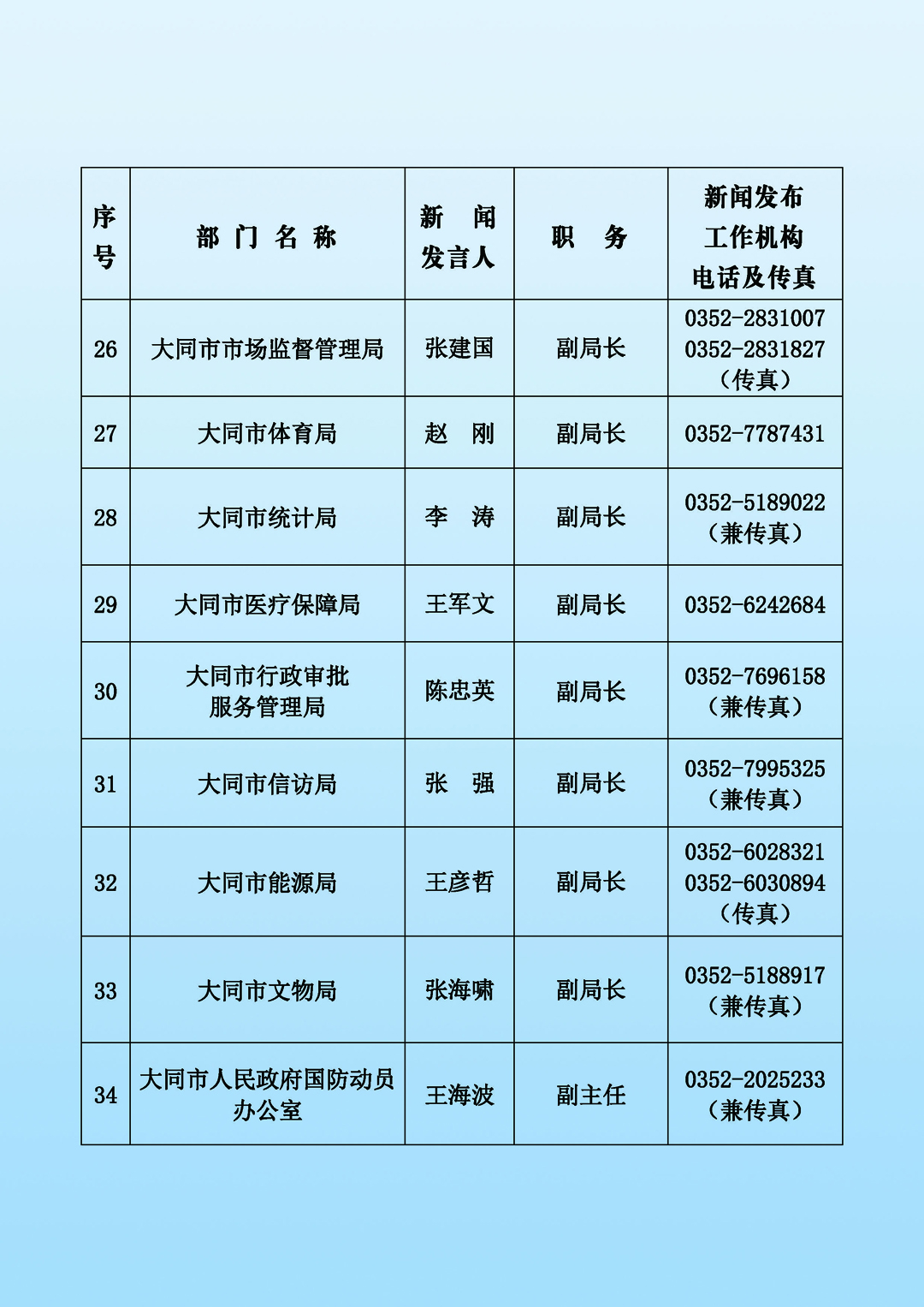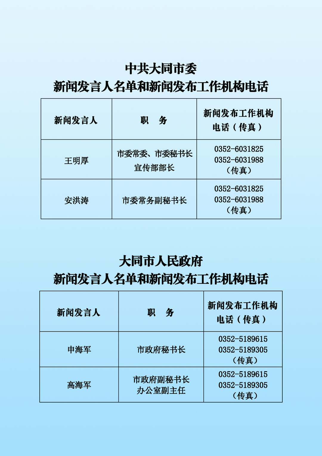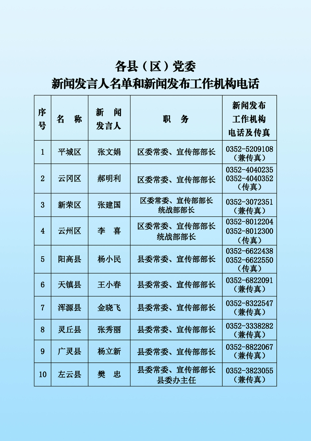 2026年大同市、县(区)党委、政府新闻发言人名单及新闻发布工作机构电话