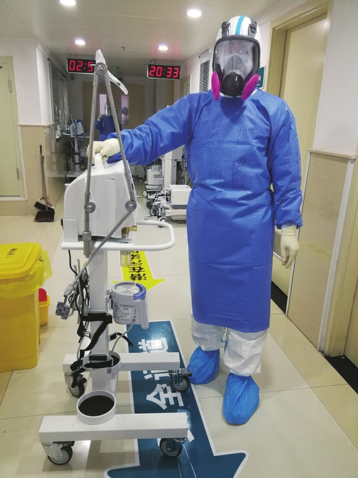 我市第五批支援湖北医疗队队员、市二医院重症医学科护师、1990年出生的芦博跃在“战”疫一线工作中。工作队提供照片