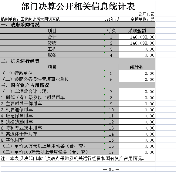 二、国家统计局大同调查队部门决算公开表(见附件)
